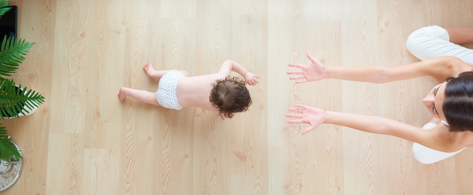 Im Durchschnitt erlernen Babys das Krabbeln zwischen dem 6. und 10. Lebensmonat.